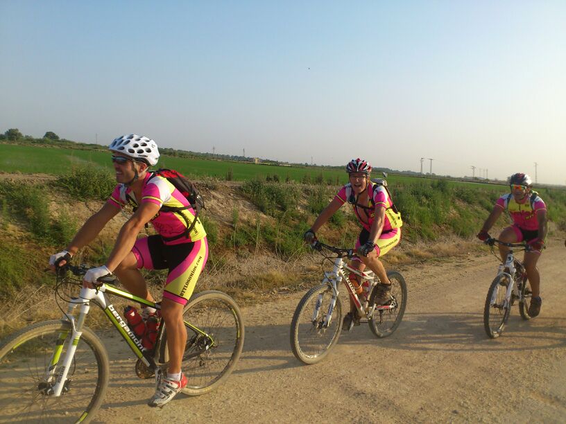 A las 8 de la mañana, hora poco habitual para las salidas, nos dimos cita en el Parque de la Constitución 9 amigos para afrontar una ruta de un kilometraje considerable. A esa hora de la mañana la temperatura era fría, por lo que nos arremolinamos en torno al único rayo de luz del sol que entraba en el parque. Comenzada la ruta, y como la temperatura era gélida, el pedaleo era lento pero constante, y apenas entrecruzabamos las palabras. Así transcurrimos por la Vía, Virgen de Gracia y el camino de Ranilla. Pero una vez cruzamos el Corbones por la pasarela metálica en busca de la Vereda de la Angorilla, el ambiente cambió, no sólo por la temperatura, sino también por el terreno, y de esta forma entramos en calor en los numerosos sube y bajas que transitabamos. Así, dos horas y media después de la salida, ya estabamos en las afueras de La Campana para dirigirnos hacia la zona donde se encuentran las famosas placas solares con su torre en el centro. Terreno este llano que nos hizo llegar rápido al lugar marcado en nuestra ruta. Tras la parada pertinente con fotos y refrigerio, volvimos para atravesar el puente de la autovía y buscar un camino que nos llevaba a la Vía de Fuentes, eso sí, pasando primero por una senda donde transcurría un arroyo. Precisamente al inicio de la Vía Verde se produce el único incidente mecánico, por lo que paramos para solucionarlo, y alguno aprovechó para un masaje. He de decir que es un lujo contar con un grupo de gente solidaria, con experiencia y que demuestra un gran compañerismo ante cualquier circunstancia o adversidad. Si a esto le unimos que además nos acompaña gente profesional de la materia en lo que a salud deportiva se refiere, pues el grupo aumenta considerablemente de nivel. Tras el tramo de vía llegamos a Fuentes para seguir buscando la misma Vía Verde que nos lleve a Marchena. Aquí el tiempo empieza a cambiar, sopla más viento, el sol desaparece, se encampota el cielo y aparecen nubes. Así llegamos a Marchena, tras atravesar un puente sobre un arroyo, donde se da la circunstancia graciosa de la jornada. No voy a contar nada más. No entramos en Marchena, puesto que por la salida de la misma buscamos la Vereda de San Juan, que nos lleva a girar en el Cortijo del Álamo y buscar el Carril de la Lana para llegar a Alcaudete. Es aquí donde nos damos cuenta de la envergadura de la ruta y del grupo humano que se ha formado para la misma. Aunque el terreno es llano, las fuerzas ya empiezan a escasear y el aire empieza a pegar fuerte, incluso aparecen algunas gotas de lluvia. Personalmente me quedo con la imagen del grupo enfilado de uno en uno por el Carril de la Lana hacia arriba, haciendo labor de equipo para que todos pudiéramos llegar a buen puerto. Una lástima que no hubiese alguien a lo lejos para que se hubiese recogido el momento en un instante fotográfico. Por último, agradecer a los compañeros de ruta todos los momentos vividos en las siete horas y media de ruta y los más de 125 kms de recorrido. Esto no terminará aquí, sino que habrá nuevos retos. Seguro.